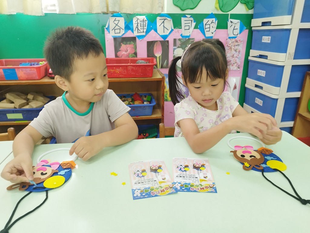 美勞時間~製作中秋佳節毛巾掛環 (2)